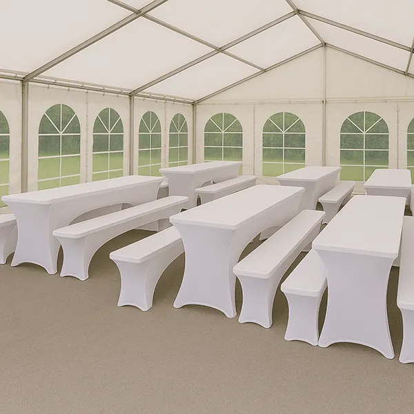 Wir verleihen Stehtische in verschiedenen Größen sowie Bierzeltgarnituren, die für eine gesellige Atmosphäre sorgen.
